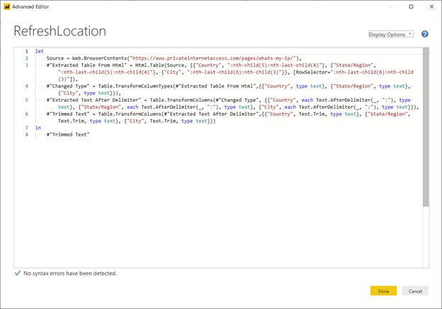 Of course, the Last Refresh is not going to change in the report. Let’s look at how they are doing it by looking at the text box. OK – This was a little disappointing to me as it is just a static text box with the title text set as “Last Refresh: Jun 30th, 2019 / Chicago, IL, USA”.