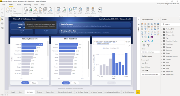 Restart Power BI and open the sample report again, go back to Net Sales tab. You should see something like this: