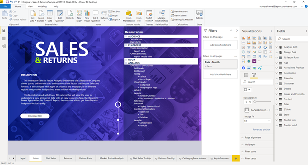 I will now walk through the Sales & Returns sample pbix file and highlight what I learned from it! I made the sample file read-only so that I don’t inadvertently change it.