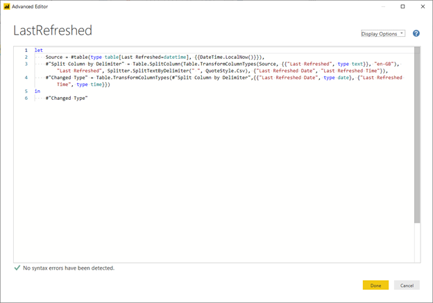 I would have thought the authors could have showcased getting the last refresh date using M.